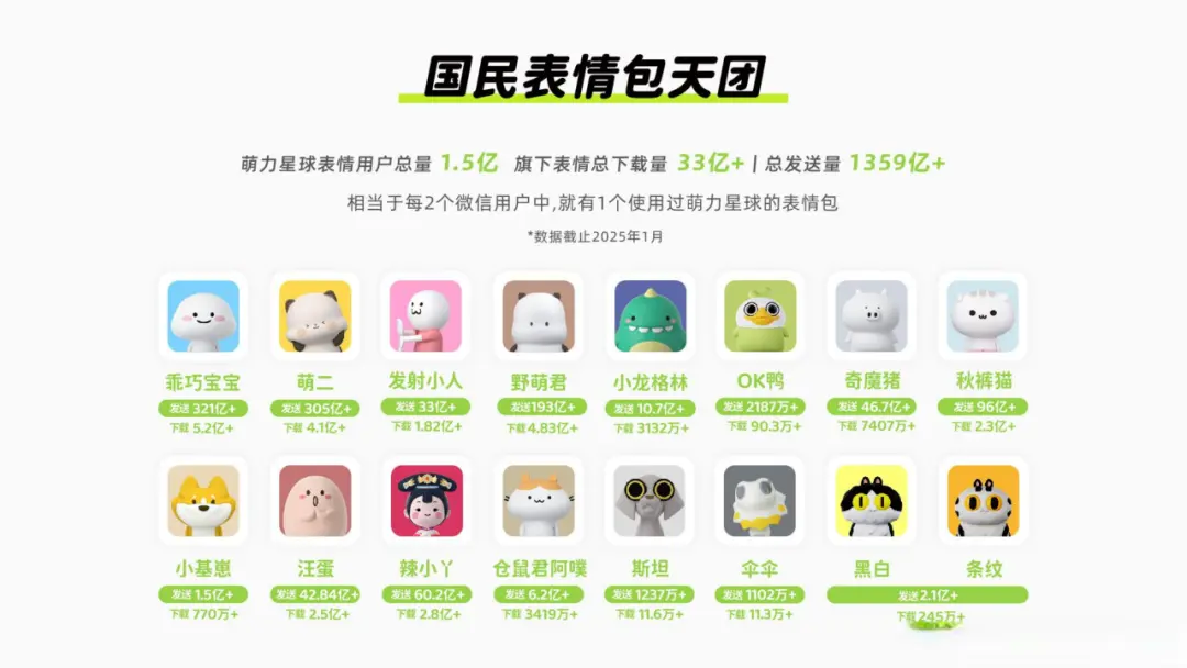 飞博共创则创立了国内知名表情包厂牌萌力星球。郭勤介绍。目前萌力星球表情包用户总量达1.5亿,旗下表情包总下载量超33亿次。“微信官方榜单里前十的表情包IP里有七个是我们家的。”